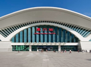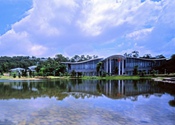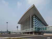 设计体现了对历史的尊重。因地段毗邻世界文化遗产明显陵,建筑整体降低高度沿水平向展开,既在尺度上与环境相呼应,又隐含中国传统建筑的布局特征。主展馆