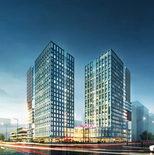 本项目为科技谷启动区标志性建筑,规划将街区商业、景观园林、创客办公有机结合为一个整体,通过下沉广场、餐饮露台、立体中庭营造绿色生态的高品质办公环