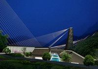 酒店位于重庆武隆仙女镇,临乌江,拨地耸峙六百余丈,云蒸霞蔚,壁立千仞,于涯壁悬鸟居四十余间,又因山就势设步云桥、天坑书院、泉韵堂、汲青阁、摘星楼