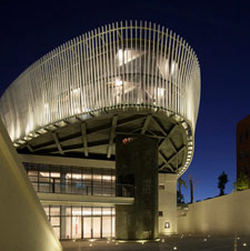 建筑主体采用海南专有的火山岩,呈横向条形排布,就地取材,混合以镜面不锈钢,将建筑的古朴特质,海南独特的历史文化气息和现代感同时表达。