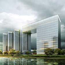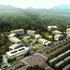设计首先最大限度的保留基地内的自然山体,以之作为科技城的生态骨架,在此基础上,建筑顺应山势布局,以人造环境勾勒自然风光。建筑的布局在竖向上同时顺
