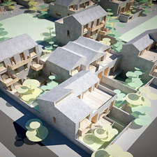 项目地形上最大的难点在于基地地形的不规则。因此,在规划设计中,充分考虑地形现状,尽量把建筑做齐整,减少凹凸,庭院也做得很方正,提高用地的经济性。