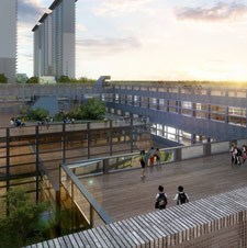 项目位于浙江省宁波市江北区湾头地区,宁波市中心的门户。设计对视线开阔景观优良的用地范围设置低层建筑,并且采用退台手法,使可视范围最大化,对有视线