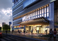 设计特意把三栋高层围合出城市空中花园广场,同时又打开了北侧小区日照遮挡面。一座 27层的酒店办公楼位于建设用地东侧,两栋 31层公寓楼位于基地左