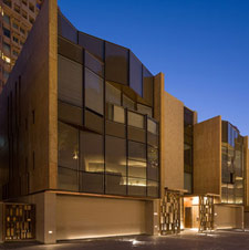 整体风格兼顾现代与古典,对比手法贯穿始终,简于繁,时尚与传统,阳刚与阴柔,矛盾共生。内部空间的旋转展览坡道设计奖旗袍最精炼的腰身设计融入建筑手法