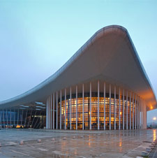 )建筑主体位于基地中部,东侧有开阔的前广场,与基地东面的市民广场呼应,共同形成连续的城市空间。建筑西侧为带型的后广场和地面停车场,停车场以东的完