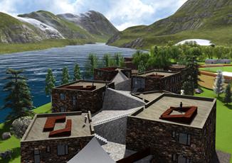 户外空间尽可能大地留出孩子们游戏玩耍的空间,保留场地本身河流冲积的缓坡地形,当地的草地本身已经形成了非常好的室外活动条件。客舍和规划的艺术家村落