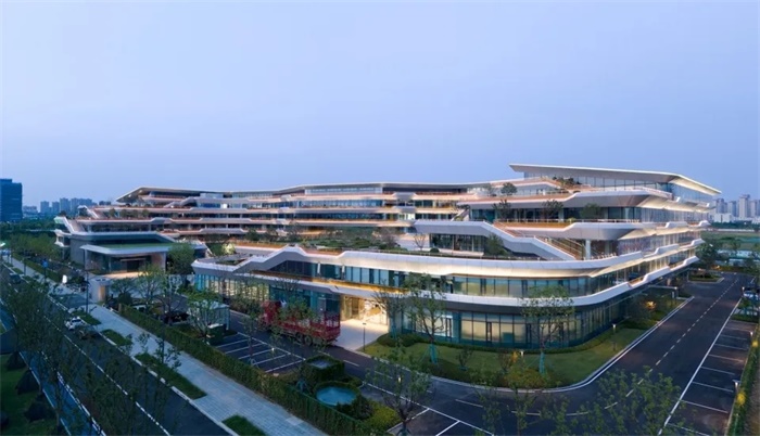近日,由line+建筑事务所联合创始人、主持建筑师孟凡浩率领建筑、室内、景观团队一体化设计的科大讯飞AI总部园区(一期)正式启用。line+作为