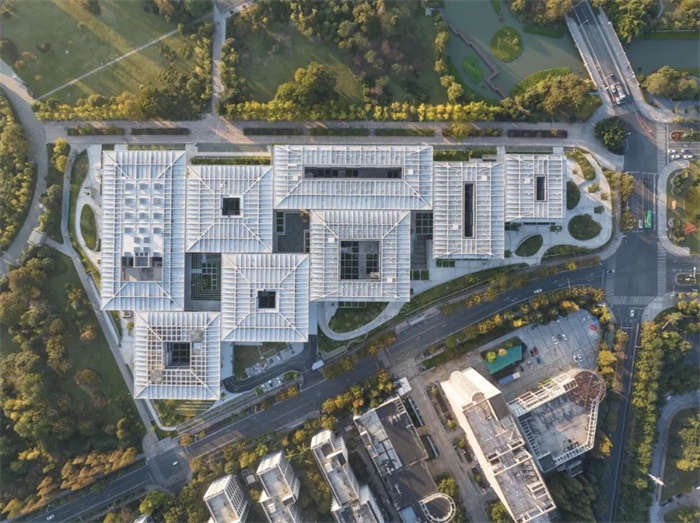 中国民航大学宁河校区图书馆位于天津市宁河区,是新校园一期工程的核心建筑。图书馆高23.7m,总建筑面积约40000平方米(其中地上建筑面积约26