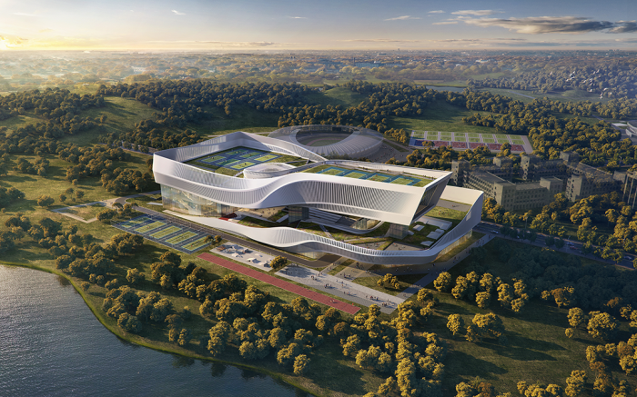 位于深圳国际大学园内的综合训练中心,充分挖掘地块特色及周边优势,采用复合化、集约化、自然式的设计策略,在功能、造型、流线等维度上进行垂直叠加设计