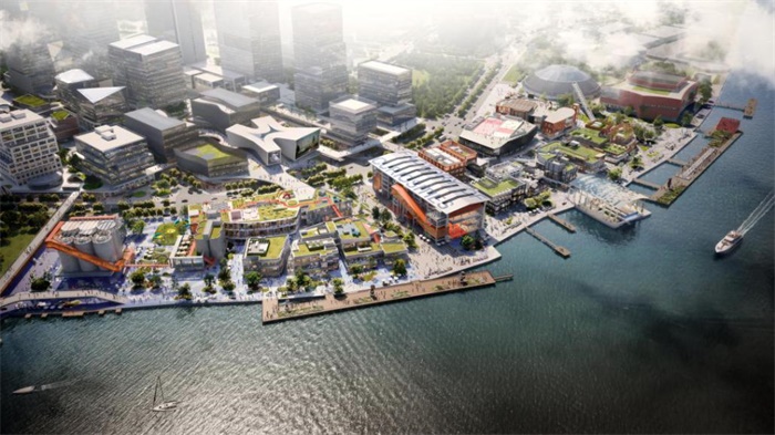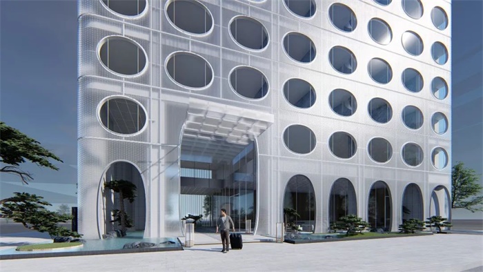 SOM的设计在建筑北立面打造出闪烁的光影效果,形成一个“站立的西湖”。宏大的北立面唤起人们对西湖天然之美的体验,也很好地衔接了毗邻的公园和市政建