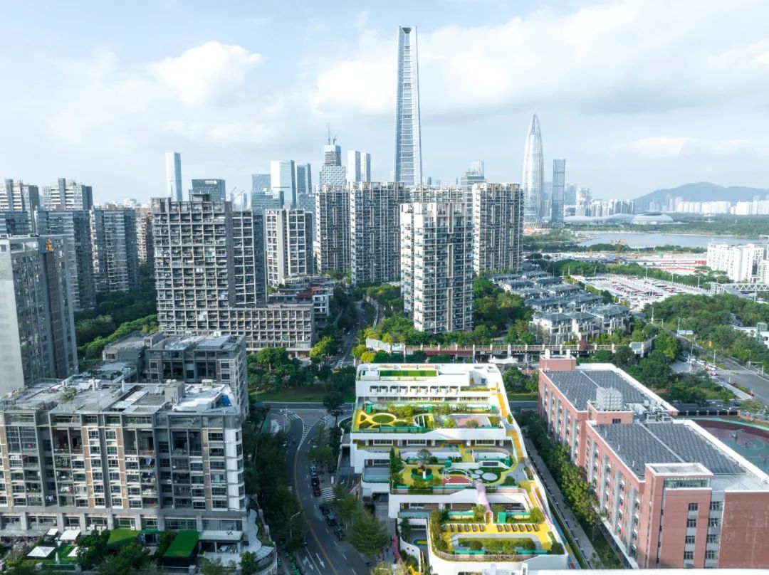 南山区教育幼儿园位于深圳湾,因片区学位紧张,需提供21班规模(630名儿童)的活动单元,容积率1.6(常规为0.8以内),属于高密度热带城市中的