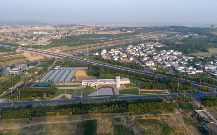 薛村党群服务中心坐落于河南省荥阳市王村镇薛村的一片三角形地块内,近“南水北调工程”中线干渠。西南侧人工河道内从丹江口引来的清澈水流缓缓向北,从不