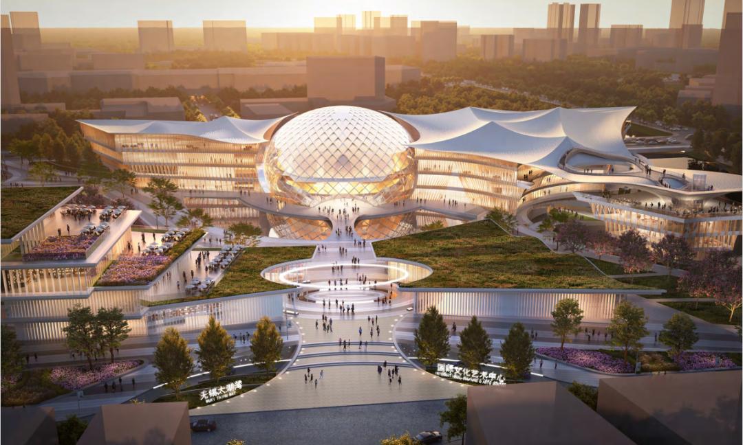 中标的建筑方案以“交响明月”为设计理念,将宇宙与音乐的宏大命题带入场地,谱写出一曲浪漫的交响音乐之旅,体现出“音乐,像月光一样,从深邃的灵魂中飘