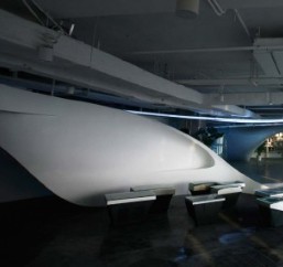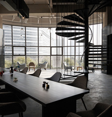 这个设计希望完全颠覆人们印象中办公空间的模式,创造一个超现实的、充满动态与能量的流动空间。这里地面、墙面、天花是一个连续不断的整体,如同有机的生