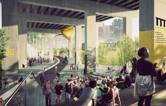多伦多公布一项计划,将在一个高架公路以下新建公园,设有户外表演区和行人和自行车道路。项目利用Gardiner高架路之下被人遗忘的四公顷土地,营造