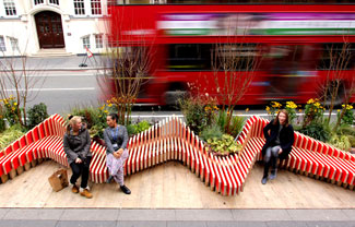 WMB工作室设计了位于伦敦桥区域的停车长椅微缩公园。该项目是一个临时性小公园,替代了两个传统的停车位,目的是提供城市绿化、公共座椅,提升人们重视