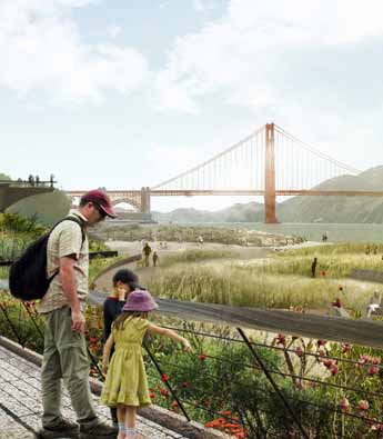 美国旧金山金门大桥区域计划将一块13公顷土地开发成大型公园。5家景观公司提交了竞赛方案。最终,James Corner Field Operat
