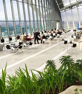 Rafael Vinoly建筑事务所设计的英国伦敦Walkie Talkie大楼设置了一个屋顶花园。置身花园之中,伦敦城市风景一览无余。花园包括