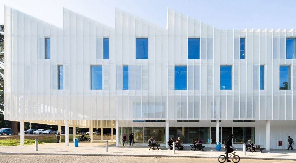 伦敦工作室Coffey Architects为诺福克市诺维奇城市学院完成了一个带多孔立面的数字技术教育中心,穿孔金属制成的白色面板营造出一种“轻
