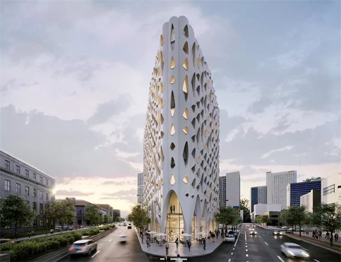 美国建筑事务所Studio Studio公布了在丹佛的一家酒店的设计方案,该酒店的白色立面上点缀着窗户,让人联想到丹佛的白杨树。