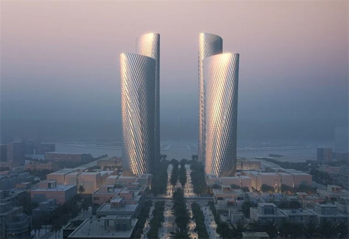 由福斯特建筑事务所设计的卡塔尔卢萨尔大厦(Lusail Towers),项目占地110万平方米,包括四栋高层建筑,两座高塔楼连接了新足球场和滨海
