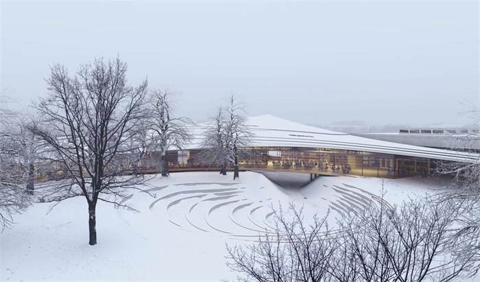 隈研吾事务所同Mad Arkitekter,BuroHappold两家公司合作,共同设计了挪威易卜生图书馆。项目位于挪威著名剧作家易卜生出生地S