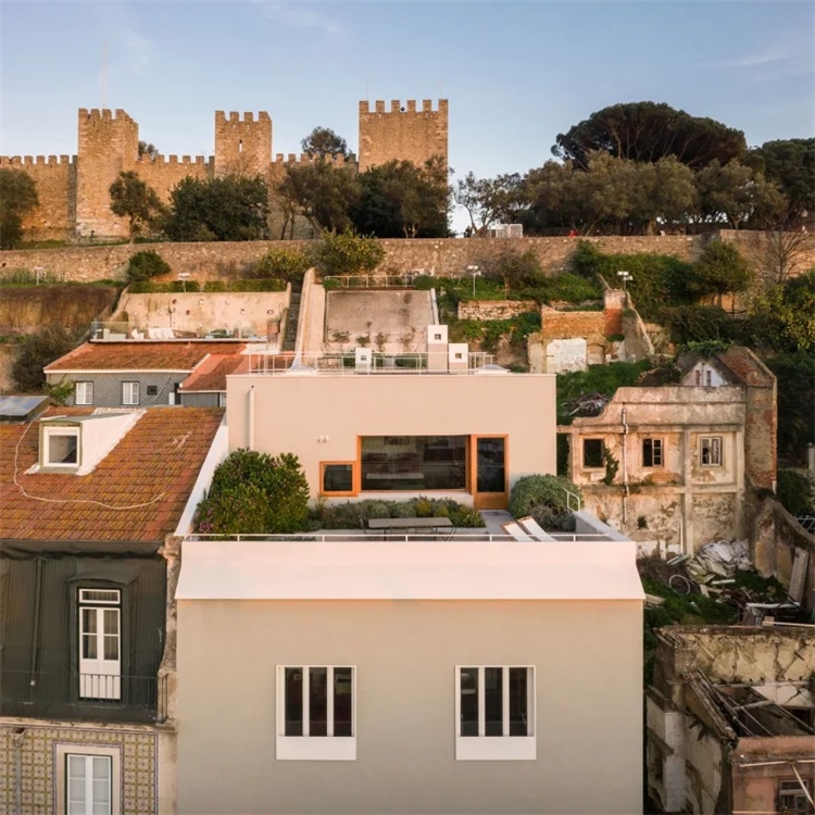 Rua Costa do Castelo路环绕Castelo de Sao Jorge山,高度明显低于山墙,因此面向道路的建筑物通常在其上层后面
