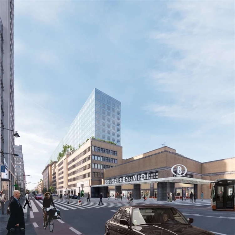 OMA计划为比利时铁路总部设立透明的,悬崖状的外立面。OMA,Jaspers Eyers建筑师事务所合作的方案赢得了比利时国家铁路公司(SNCB