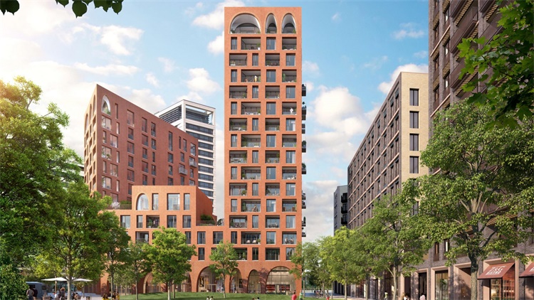 伦敦Cadence住宅项目的底层和顶层设有红砖拱门结构。由艾莉森·布鲁克斯事务所(Alison Brooks Architects)设计,位于国