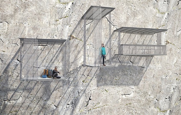 Christophe Benichou设计了法国东南部Verdon峡谷的攀岩者休憩空间。自1960年代起,这一南法峡谷凭借独特的石灰岩材质和深度