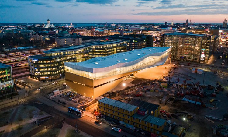 赫尔辛基Oodi中央图书馆由芬兰ALA事务所设计,包含上层开放式大型阅览室和设有若干圆形天窗的连贯屋面。这个旗舰图书馆坐落于芬兰议会对面,旨在容