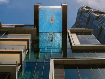本项目位于夏威夷,是一座摩天大楼,成为最新带有令人晕眩的空中泳池的建筑。勇敢的游泳者可以通过透明底座,俯瞰大地。建筑坐落于火奴鲁鲁,由Solom