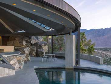 John Lautner设计的Arthur Elrod住宅位于棕榈泉市,拥有混凝土穹顶和007金刚钻影片中的标志性半月形泳池。住所坐落于Arab