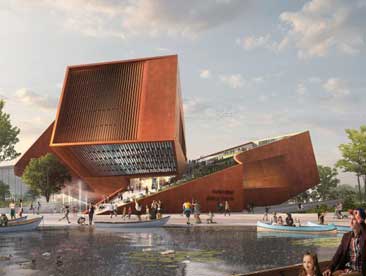 UNStudio赢得了一项国际竞赛的优胜,方案是在巴黎郊外建设一座电影院和文化中心。项目拥有耐候钢外墙和绿色屋顶,将成为BIG事务所设计的Eur