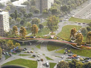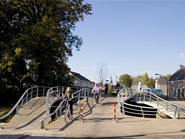 为了协调Glanerbeek生态区与机动车交通运输之间的矛盾,以可持续发展作为设计的出发点,打造生态交通。漫步桥位于小河之上,依照视觉与生态的需