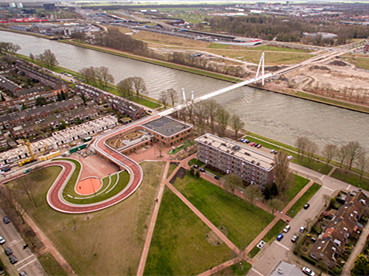 DafneSchippers大桥,俗称“欧米伽桥(Ω桥)” 位于乌得勒支,横跨阿姆斯特丹莱茵运河,于2017年4月3日开放通行。欧米伽桥是受乌得