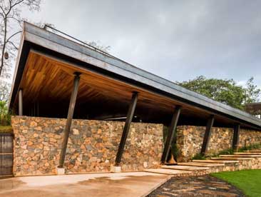 这个位于墨西哥农场的休息室设在山坡上,包含醒目的阶梯屋面,可用于举办活动。最初是一家养马的家庭农场,这座坐落于San Miguel Cuyutl