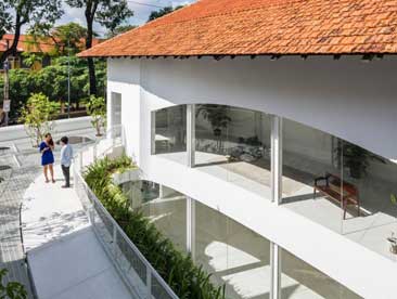 这是一座位于胡志明市的1940年代住宅,一条长长的光井横亘在建筑的外立面上。项目由当地Kientruc O工作室完成。名为D住宅的项目包含拥有七