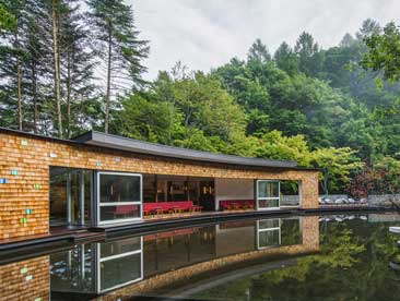 美国Flansburgh公司在马塞诸塞州乡村营造了演艺学院建筑。建筑特点是拥有暖色木质和条状玻璃装饰。Perles Family工作室位于田园小