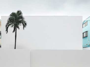 小川晋一事务所设计了日本神奈川县的一所住宅。这座海滨住宅的特点是其中一面混凝土白墙上没有开窗,而另一面墙上设有悬挑和玻璃落地窗以及无边际泳池,享