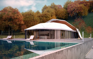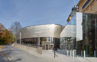 这座扩建楼建在一片狭小的岩石地基上,内设门厅、舞台和沙龙,可容纳800名观众。建筑师将楼体的大部分设计在地下,这样就形成了双层门厅。建筑外墙采用