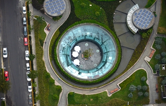 在墨西哥城,有一座建在公园地下的下沉商场。商场下面为停车场,距离地面33米。商场一共三层,全部都沉在地下,商场顶部与公园地面平齐。商场一层有圆形