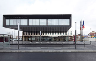 ECDM建筑事务所完成了法国巴黎郊区Bezons市政厅设计。项目面对道路采用缩进处理,最明显特点是醒目的悬挑结构,营造出下方具有遮盖的公共空间。