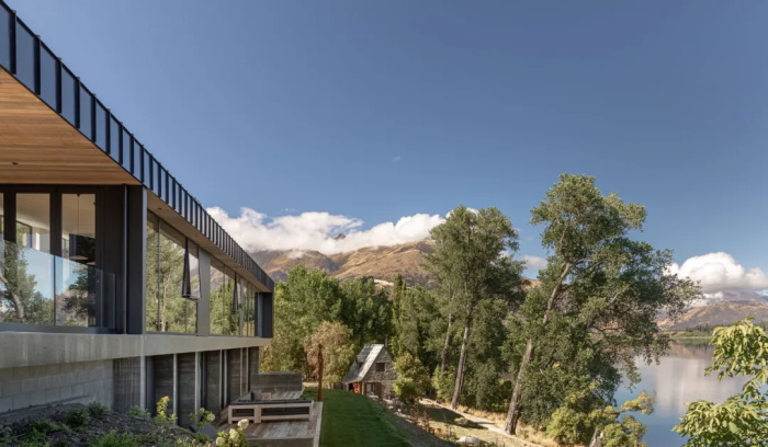 位于新西兰皇后镇湖海斯上方岩石斜坡地形中的Lake Hayes Home,由Ben Hudson Architects设计,是一座与环境巧妙融合