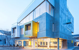 Koossino工作室设计了位于韩国首尔的Maxcube创意工坊。这是一座混凝土建筑,设有白色和黄色的凸窗,坐落于市北的建筑成为艺术家社区办公空
