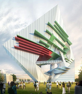 新国家当代艺术中心设计草案的核心概念是将俄国画家马列维奇(卡西米尔·塞文洛维奇·马列维奇,1878——1935)的绘画诠释成建筑语言。从建筑的各
