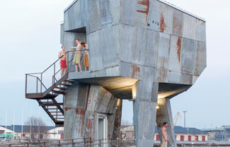 柏林Raumlabor建筑事务所设计了瑞典哥德堡的桑拿浴室。项目位于城市工业港口,带有粗粝的钢铁外观和温暖的木材内饰。建筑坐落于水上,设计师通当