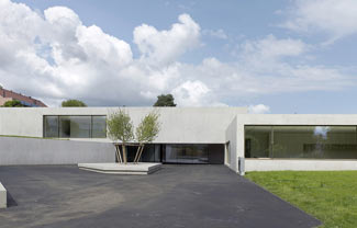 Pierre-Alain Dupraz利用清水混凝土材料设计了这所位于瑞士的十字形幼儿园。项目临近日内瓦湖Prangins,包含相互交叠的四座长