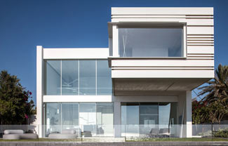 Pitsou Kedem建筑事务所设计了一座海边住宅。建筑二层采用悬挑结构,突出伸向地中海方向。外立面设有水平凹槽,勾勒出美观的阴影。业主夫妇有
